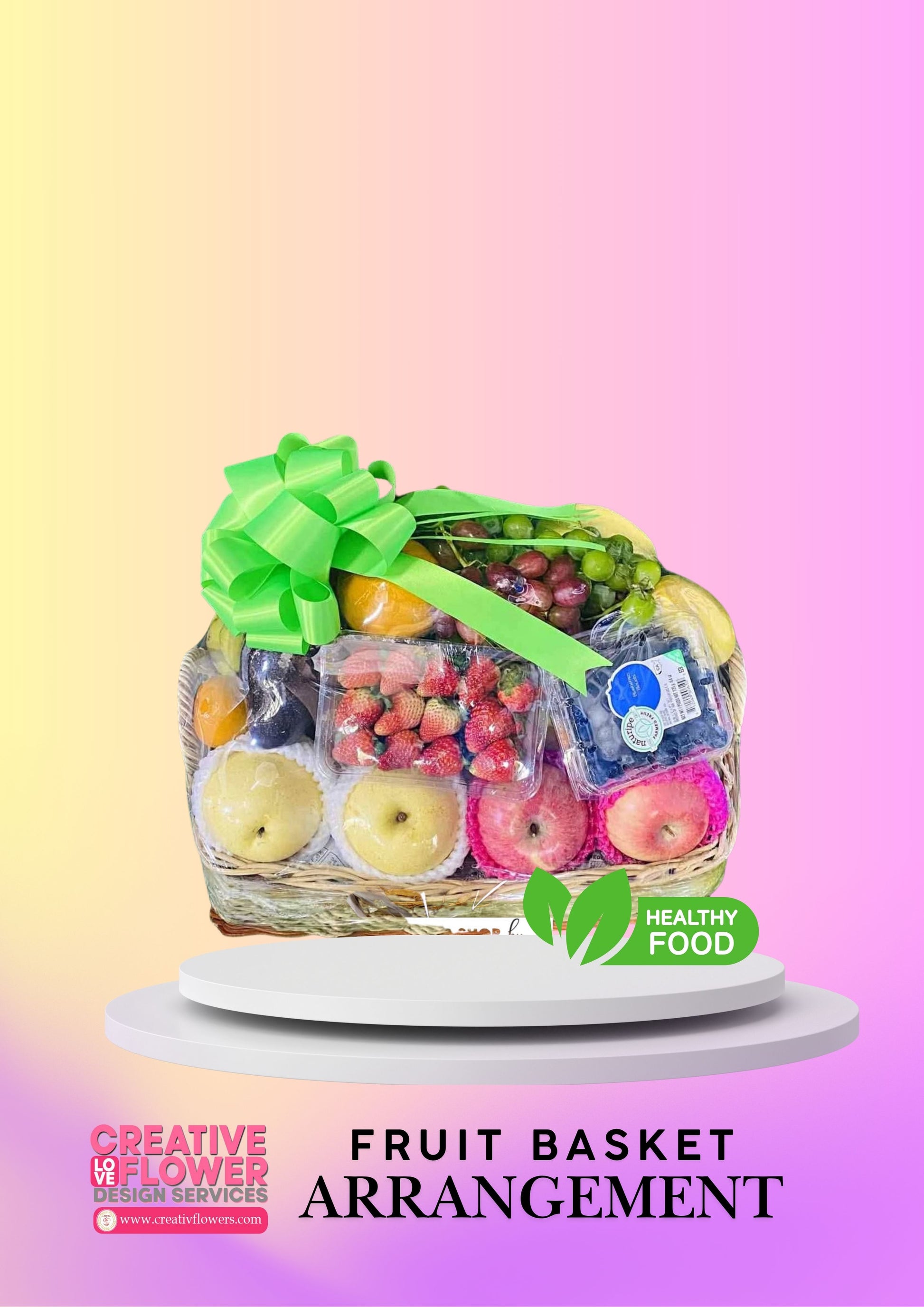 Experience the richness of fresh fruit with this abundant assortment. Each basket includes three crisp Fuji apples, three juicy pears, three mangoes at your preferred ripeness, a seasonal berry selection—either strawberries or blueberries depending on what's in season—complemented by half a kilo of purple grapes, half a kilo of green grapes, and three perfectly semi-ripe avocados. An ideal gift to express care and share the goodness of nature's harvest.
