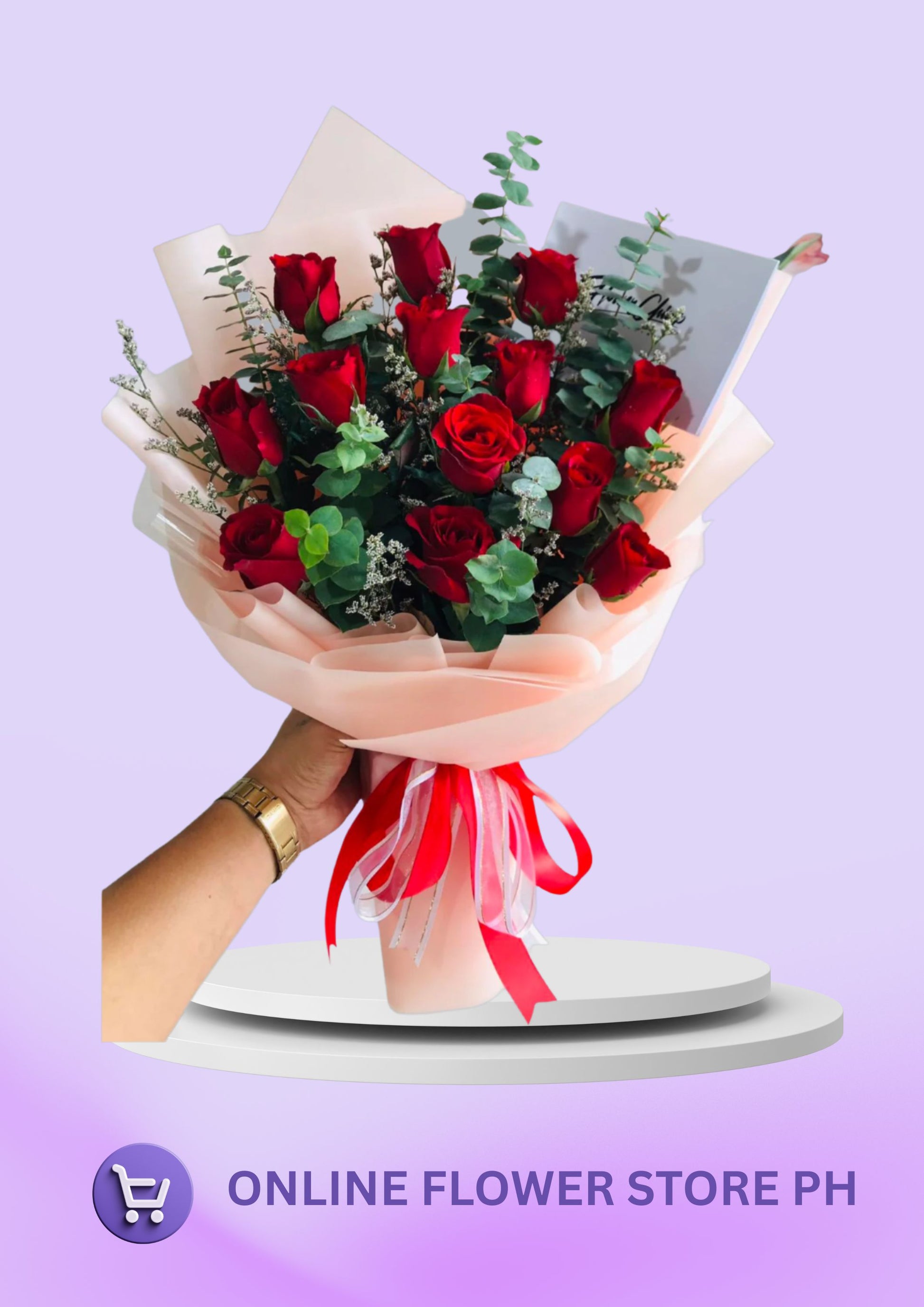 Celebrate love with the Red Elipse bouquet, featuring a dozen vibrant red roses complemented by delicate eucalyptus fillers. This elegant arrangement combines classic romance with a fresh, natural touch, perfect for expressing deep affection and heartfelt emotions. Ideal for special moments that deserve a timeless symbol of passion.