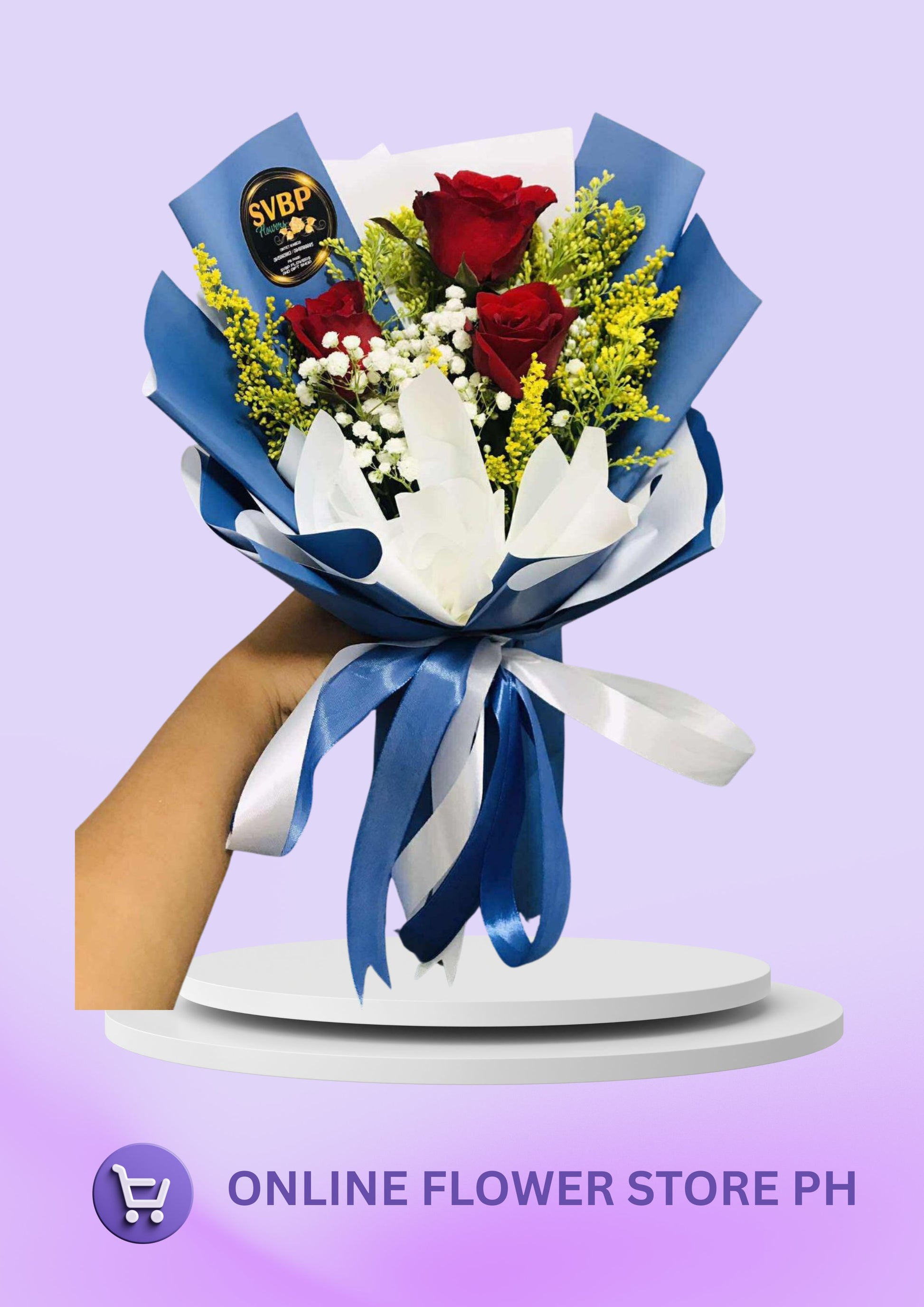 This elegant bouquet features three vibrant red rose stems arranged with minimalist charm, perfect for expressing heartfelt romance. Its simple yet striking design highlights the natural beauty of each rose, making it an ideal gift to convey love and affection with understated elegance.