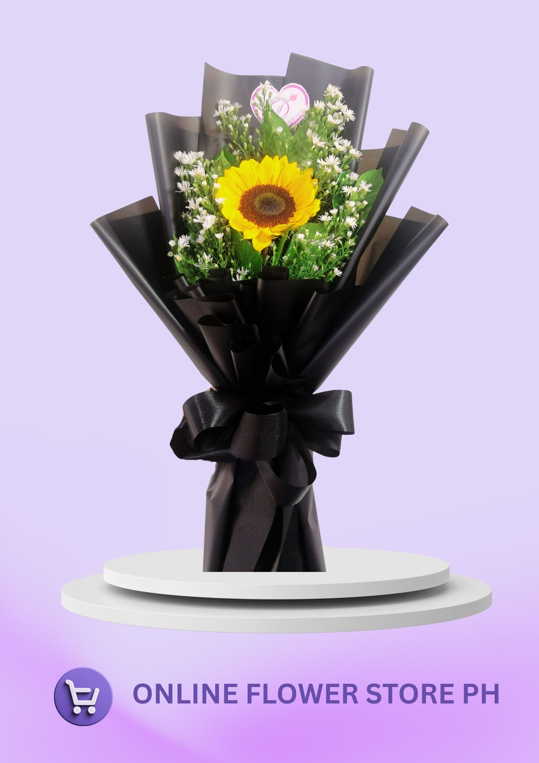 The Sunshine Single features a vibrant sunflower as the focal point, elegantly complemented by a delicate bouquet of asters. This arrangement balances bold cheerfulness with subtle charm, making it perfect for brightening any space or occasion with a touch of natural elegance.